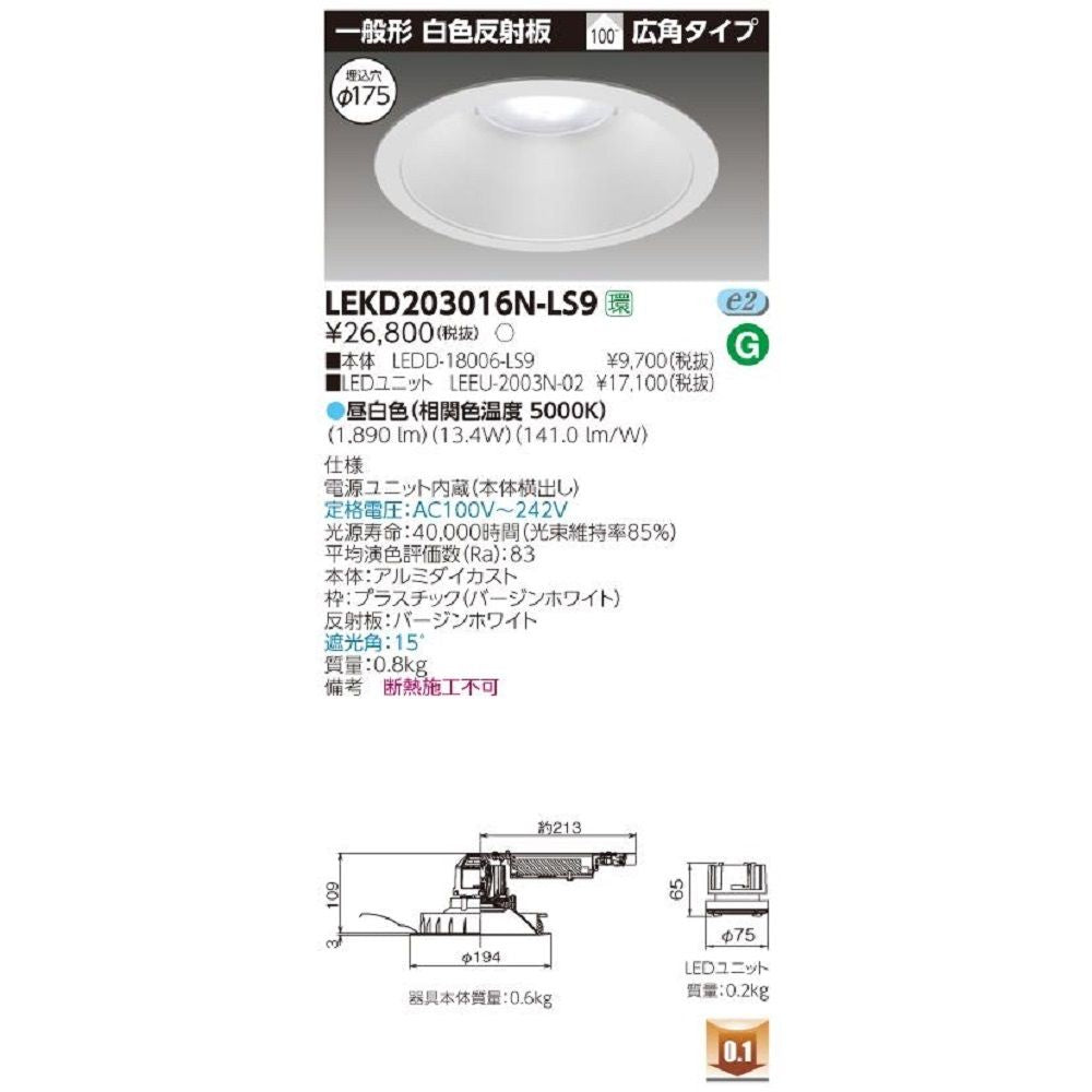 LEDD-18006-LS9+LEEU-2003N-02 LEDダウンライト 昼白色 LEKD203016N-LS9