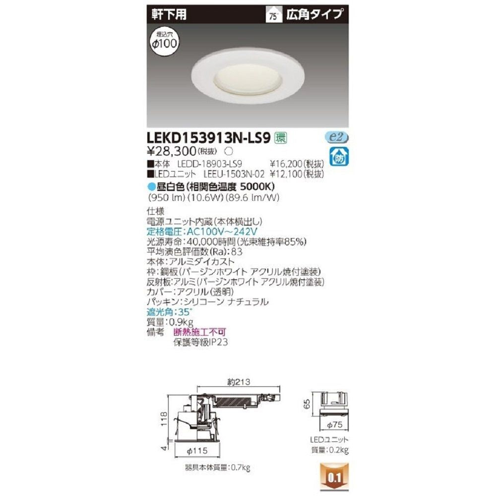 LEDD-18903-LS9+LEEU-1503N-02 LEDダウンライト 電源内蔵 LEKD153913N-LS9