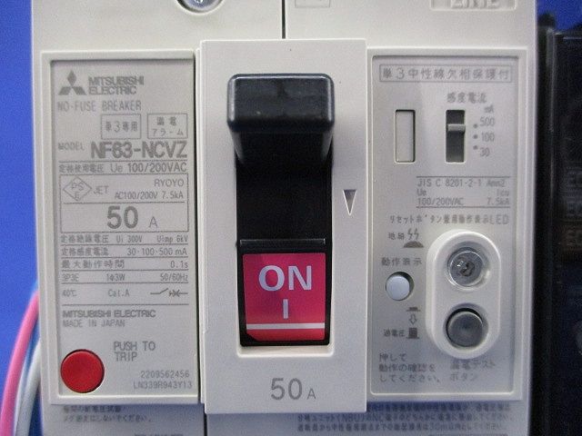 ノーヒューズブレーカ3P3E50A(アラームスイッチ付) NF63-NCVZ