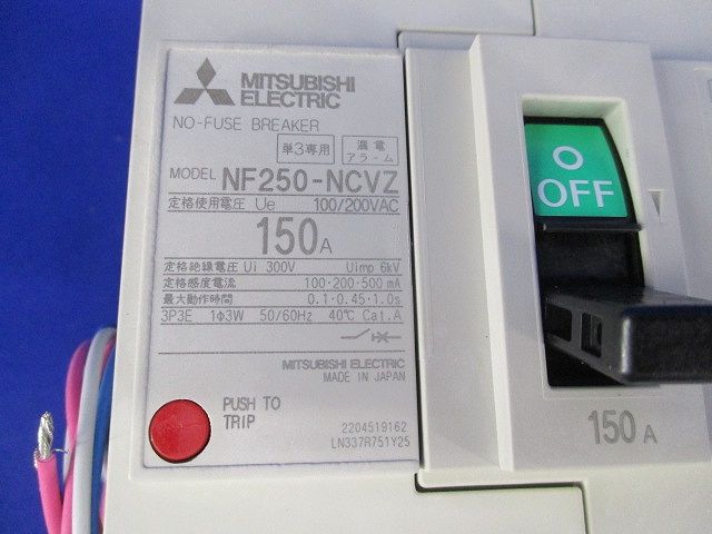 ノーヒューズブレーカ3P150A(アラームスイッチ付) NF250-NCVZ