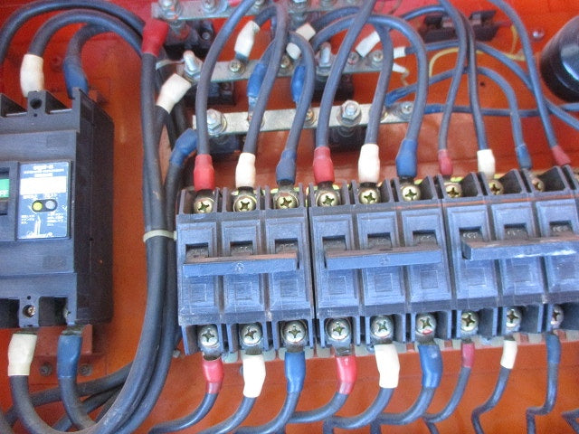 仮設用キャビネット 動力分電盤125A 鉄製 オレンジ(ジャンク品) メーカー混在 GB-123EA他