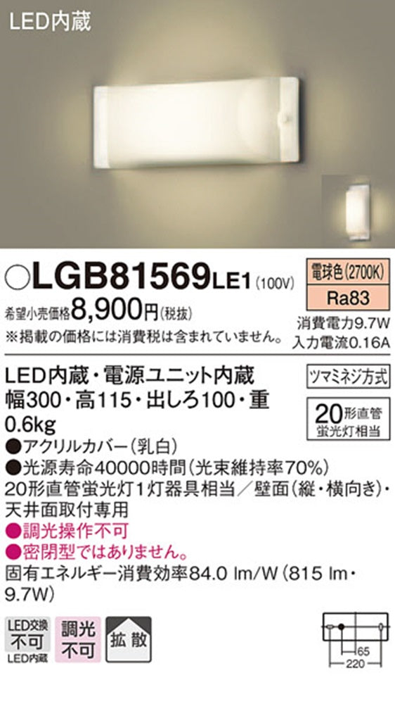 多目的ブラケット 電源内蔵 調光不可 LGB81569LE1