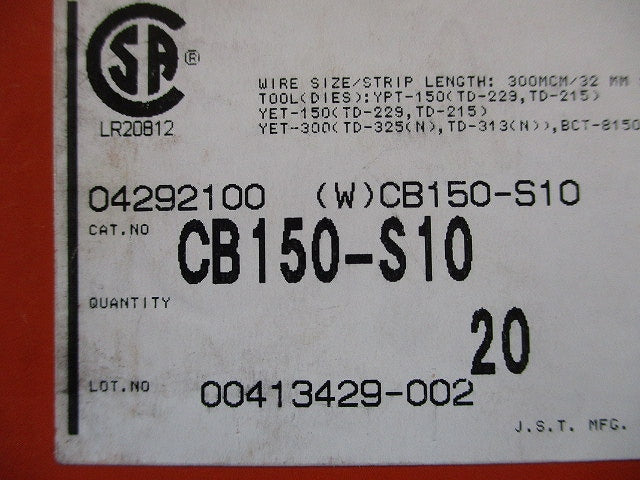 低圧開閉器用裸圧着端子 20個入 CB150-S10-20