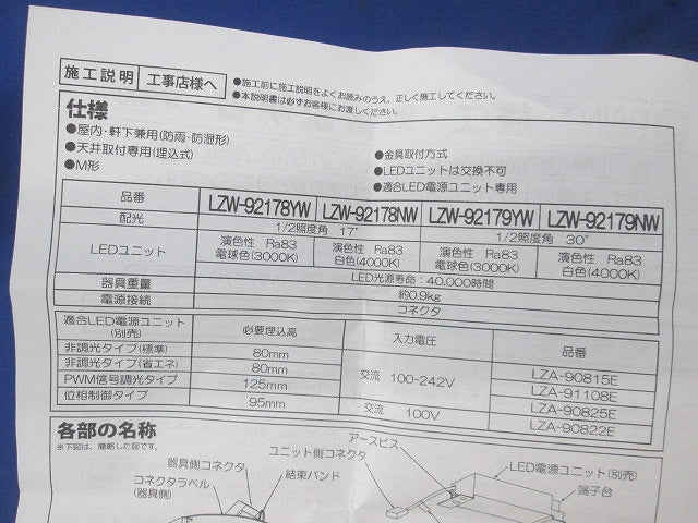 LED軒下用ユニバーサルダウンライト LZW-92179NW